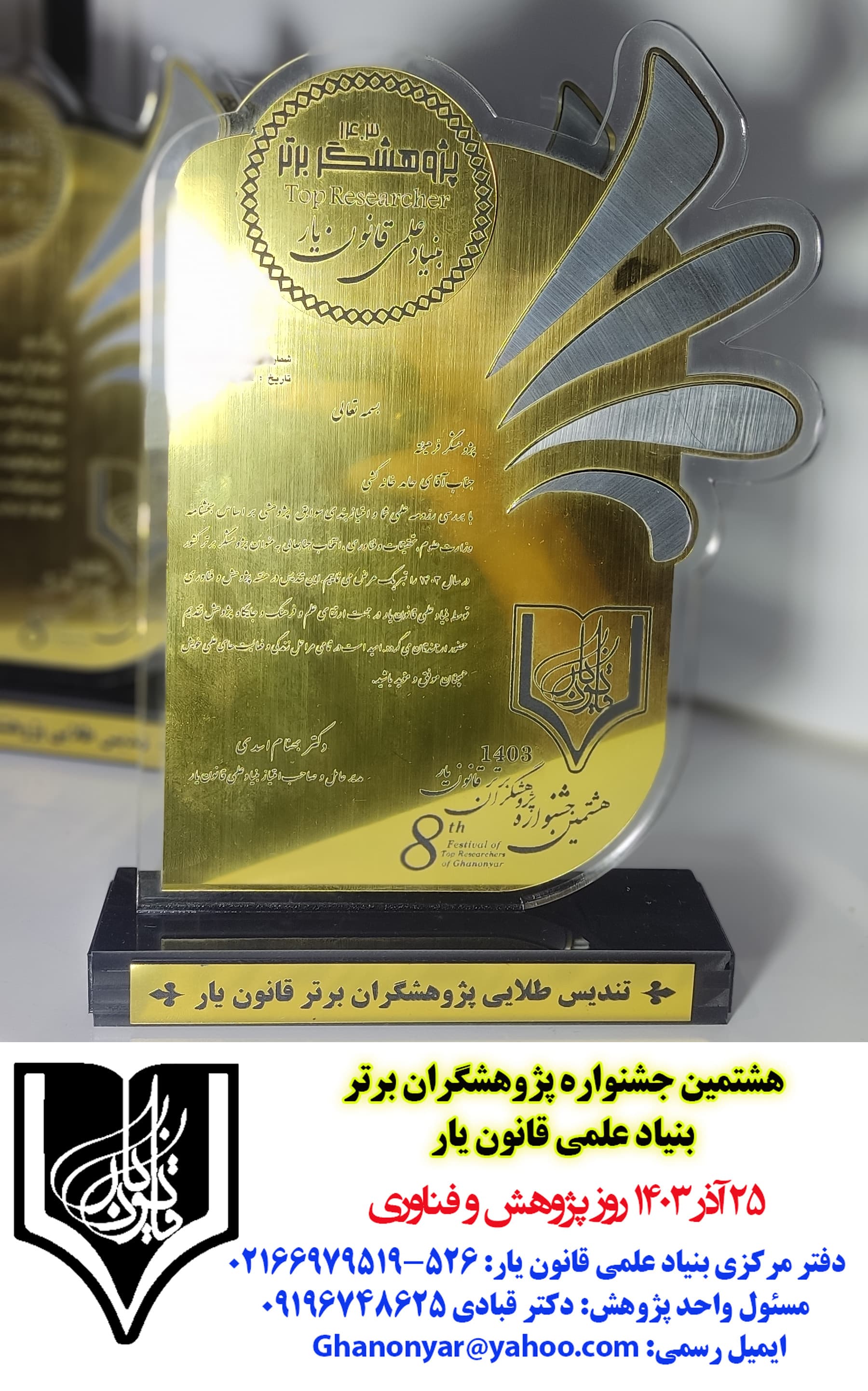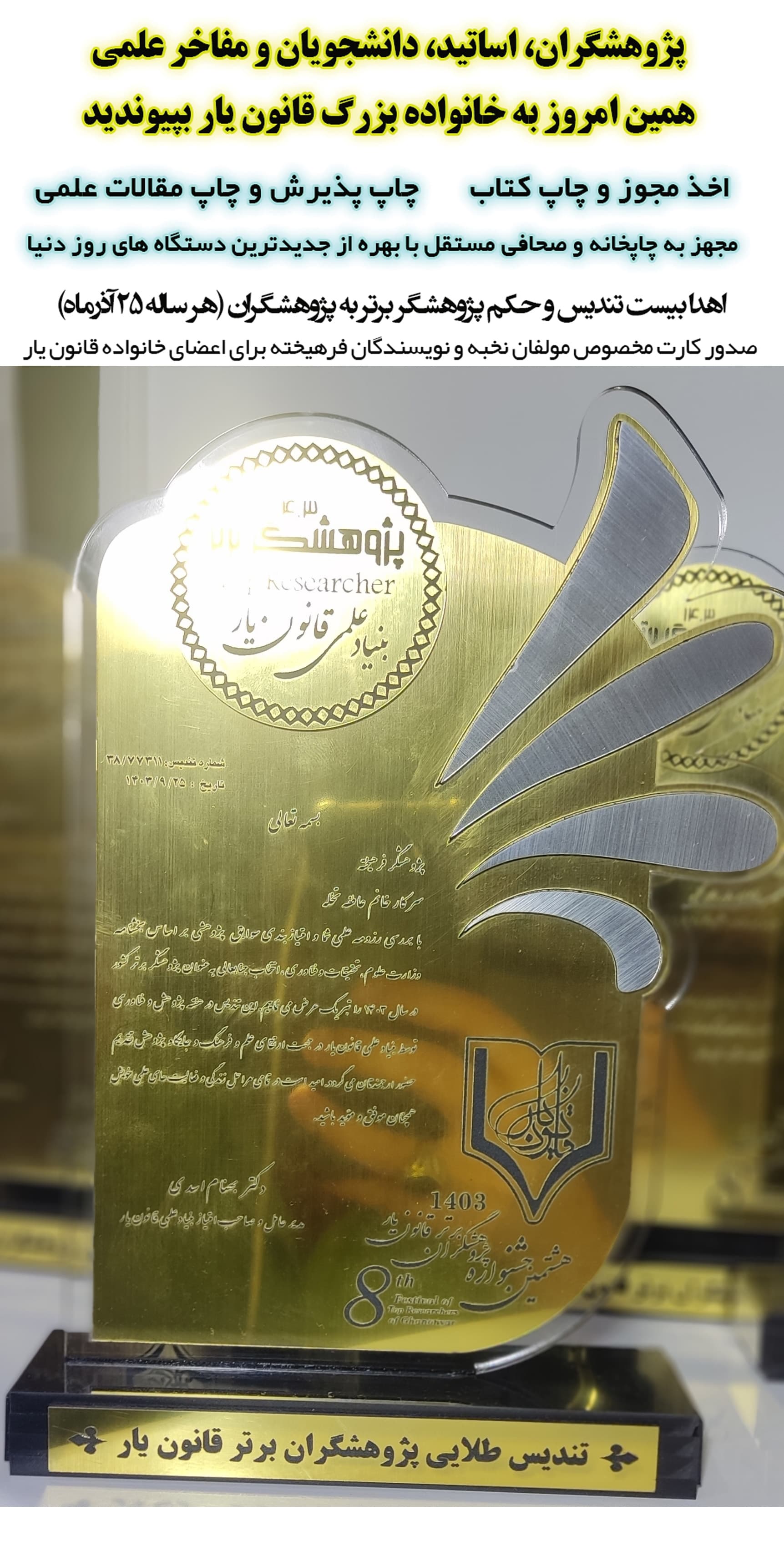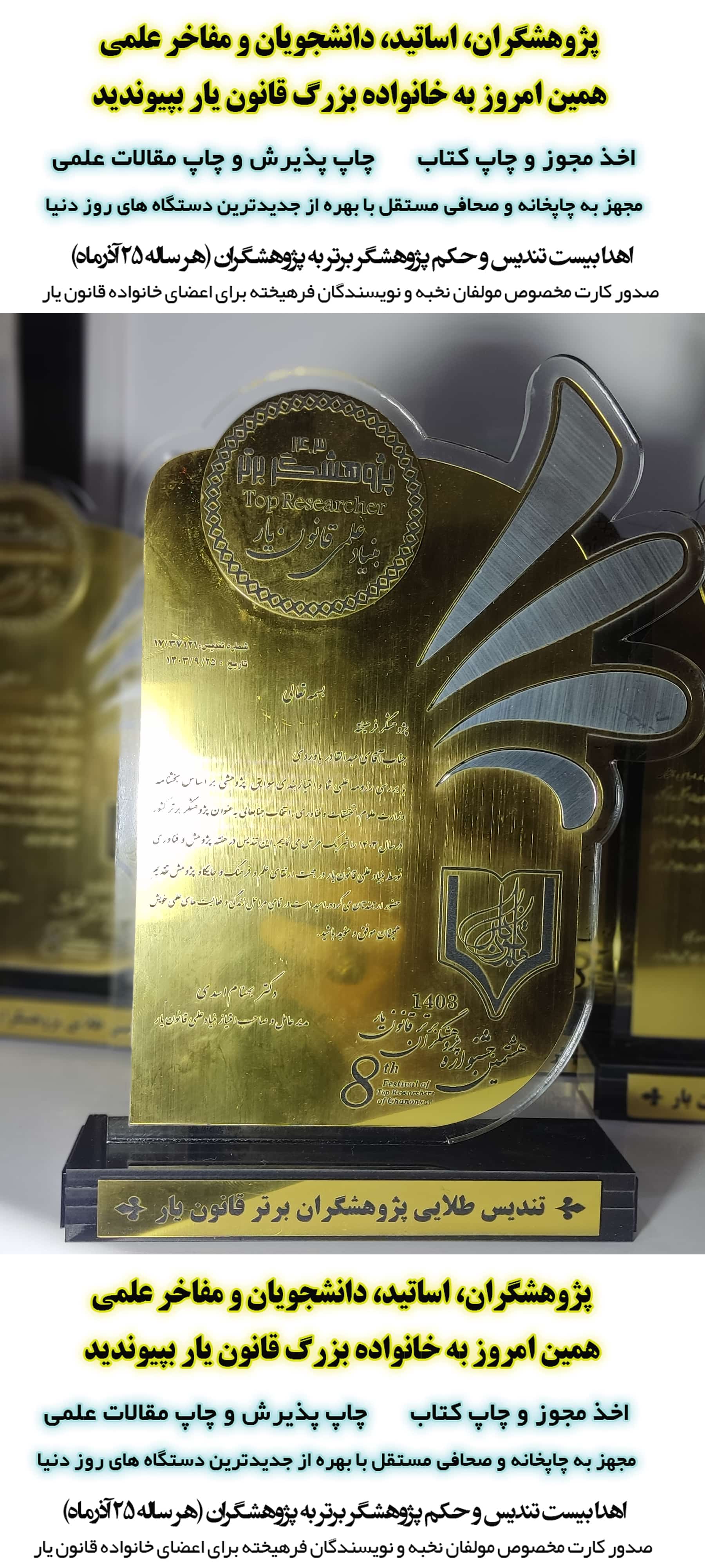عکس تندیس های پژوهشگران برتر قانون یار
