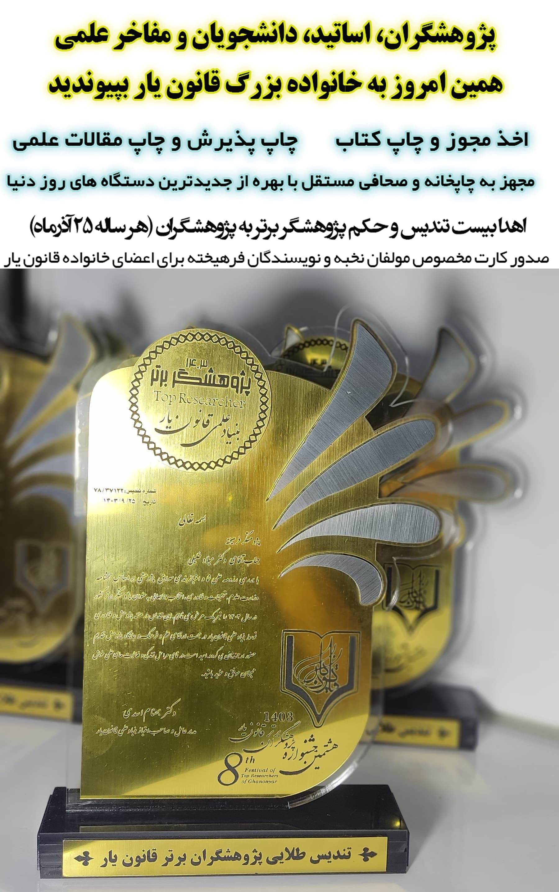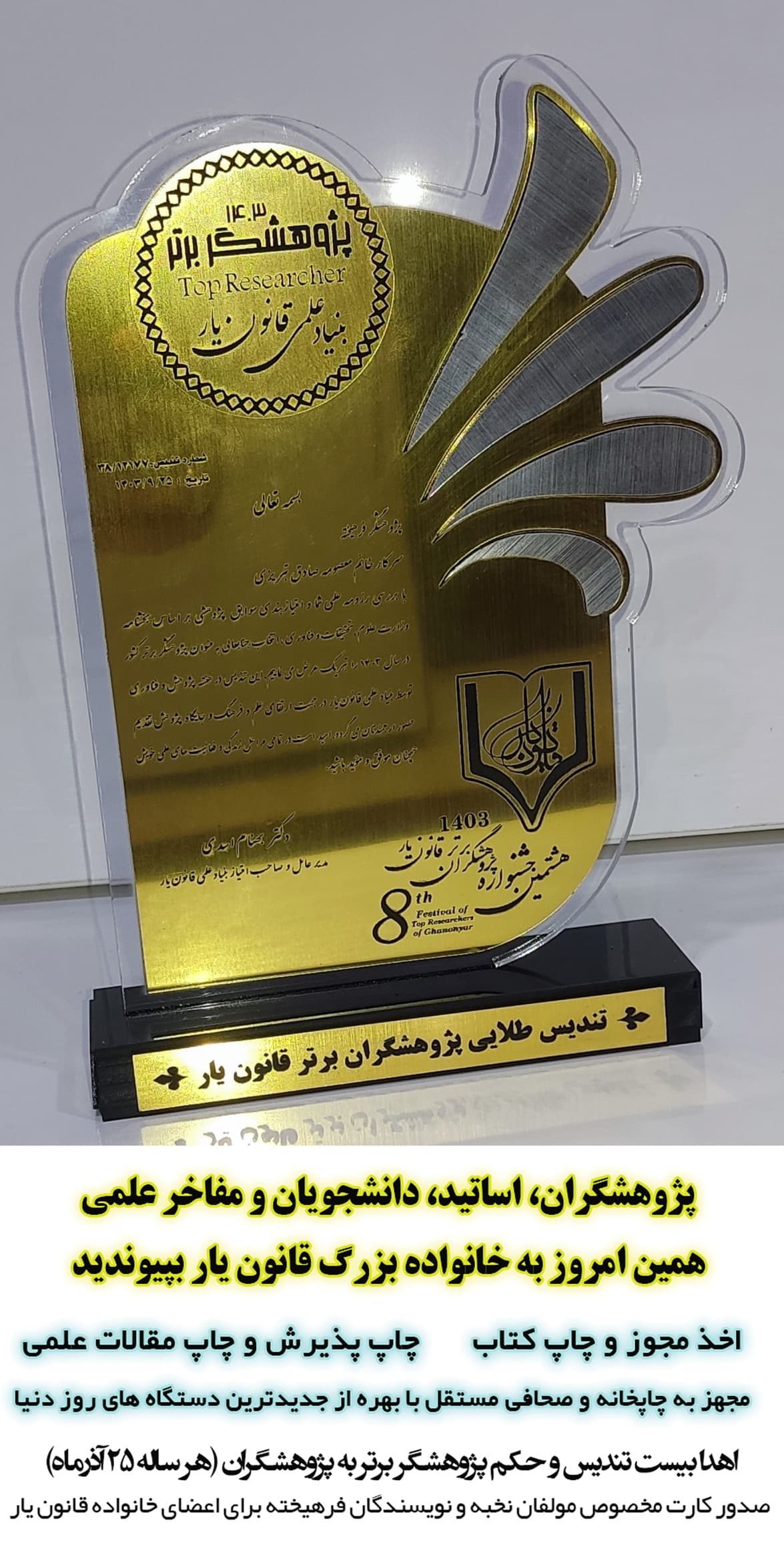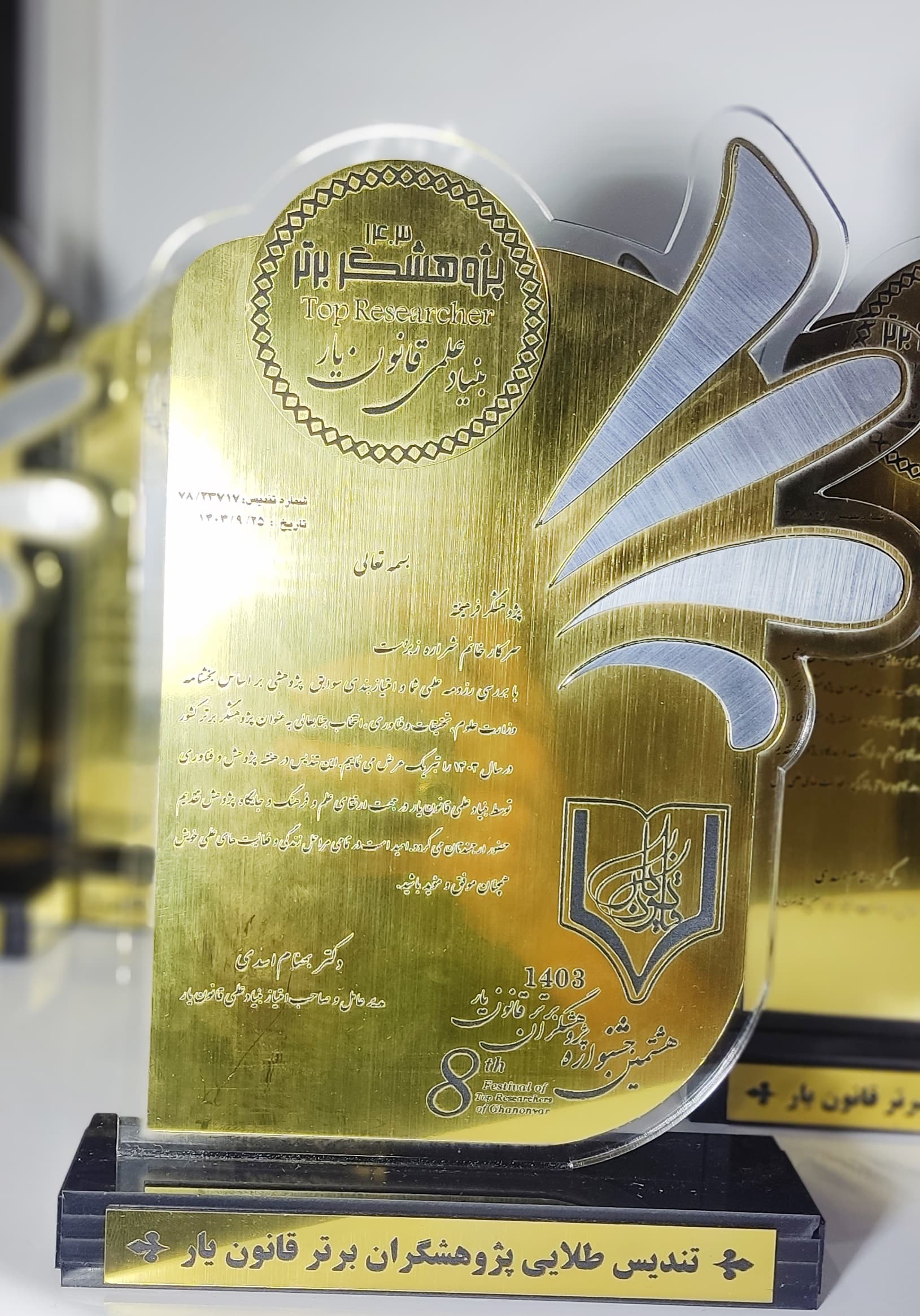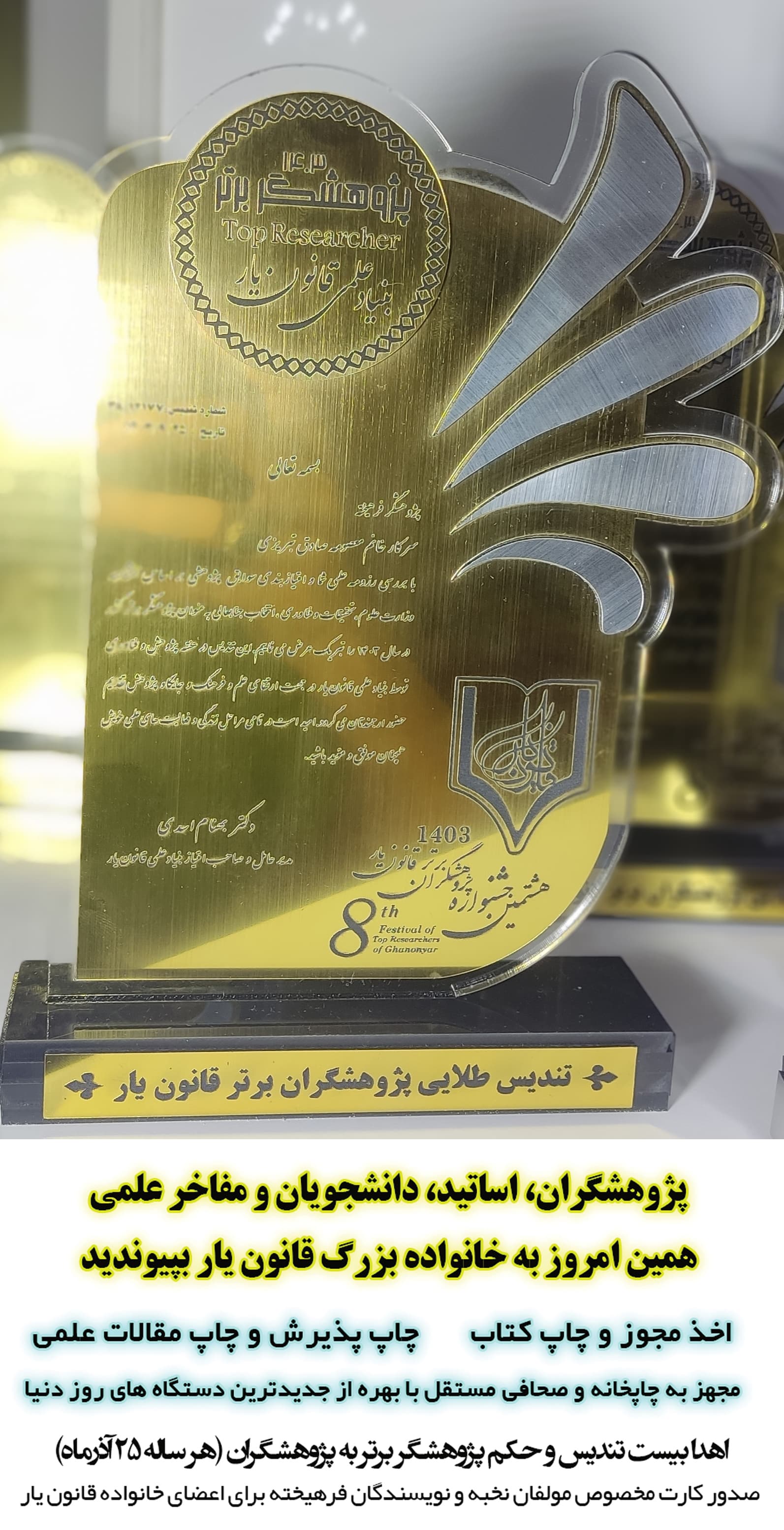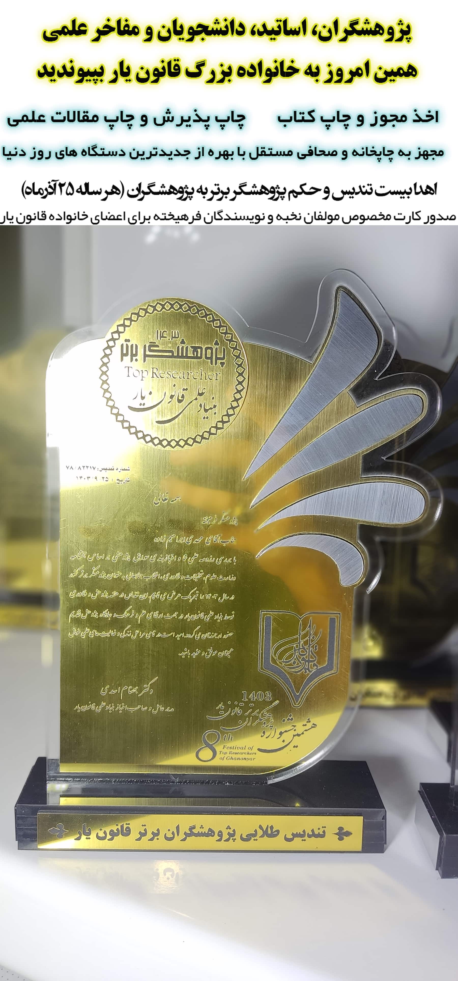تندیس طلایی و پرافتخار پژوهشگران برتر سال 1403