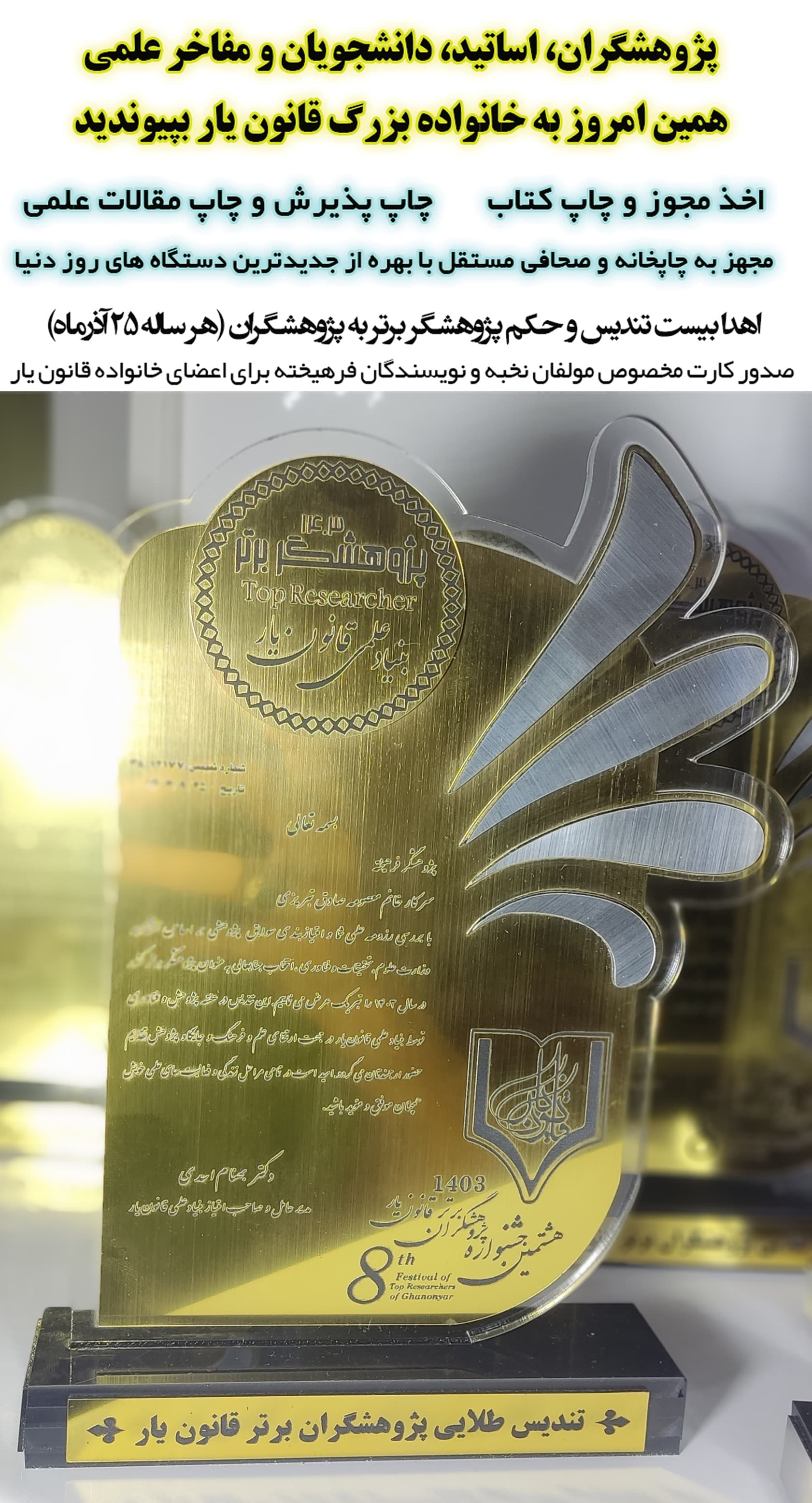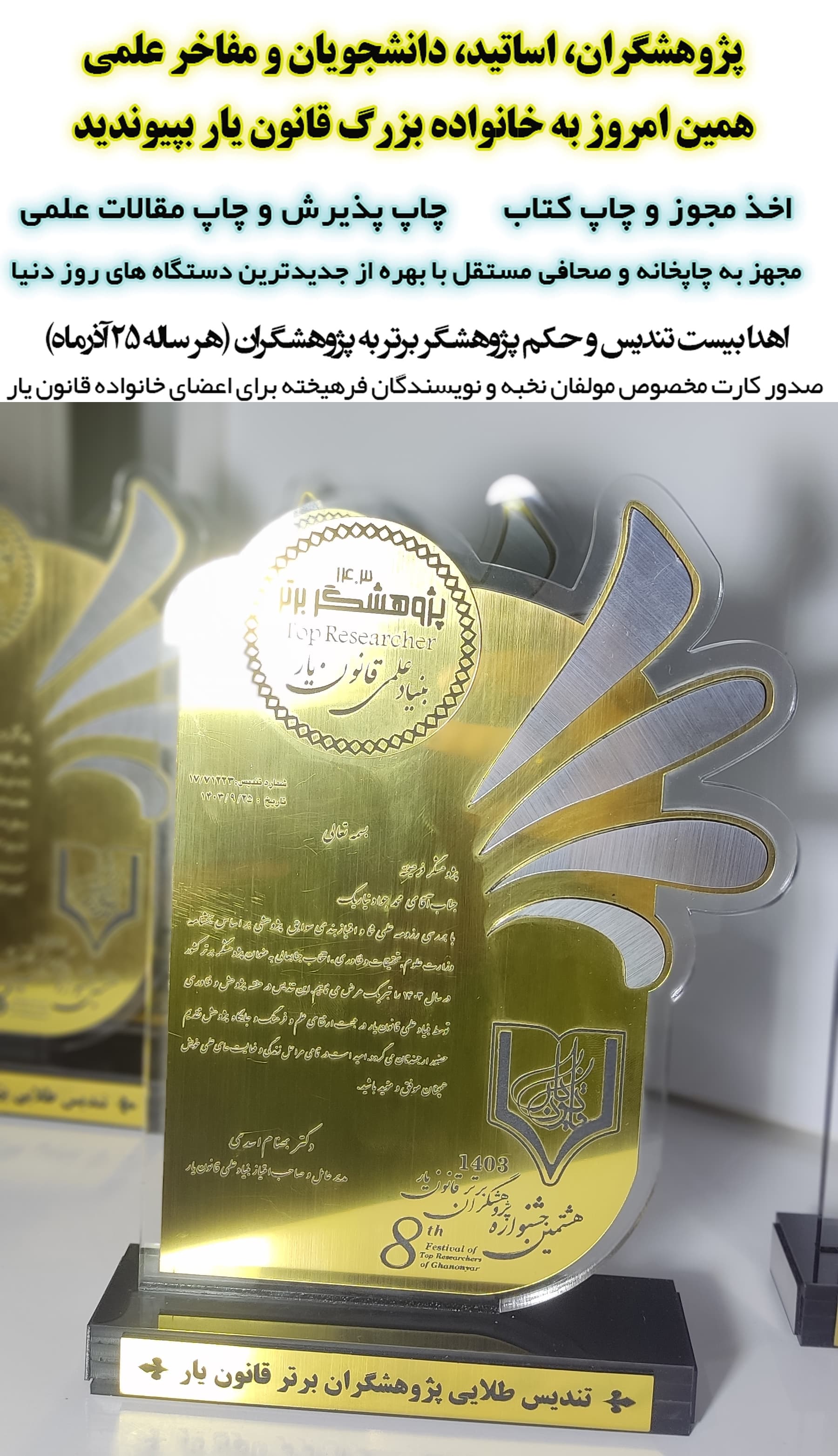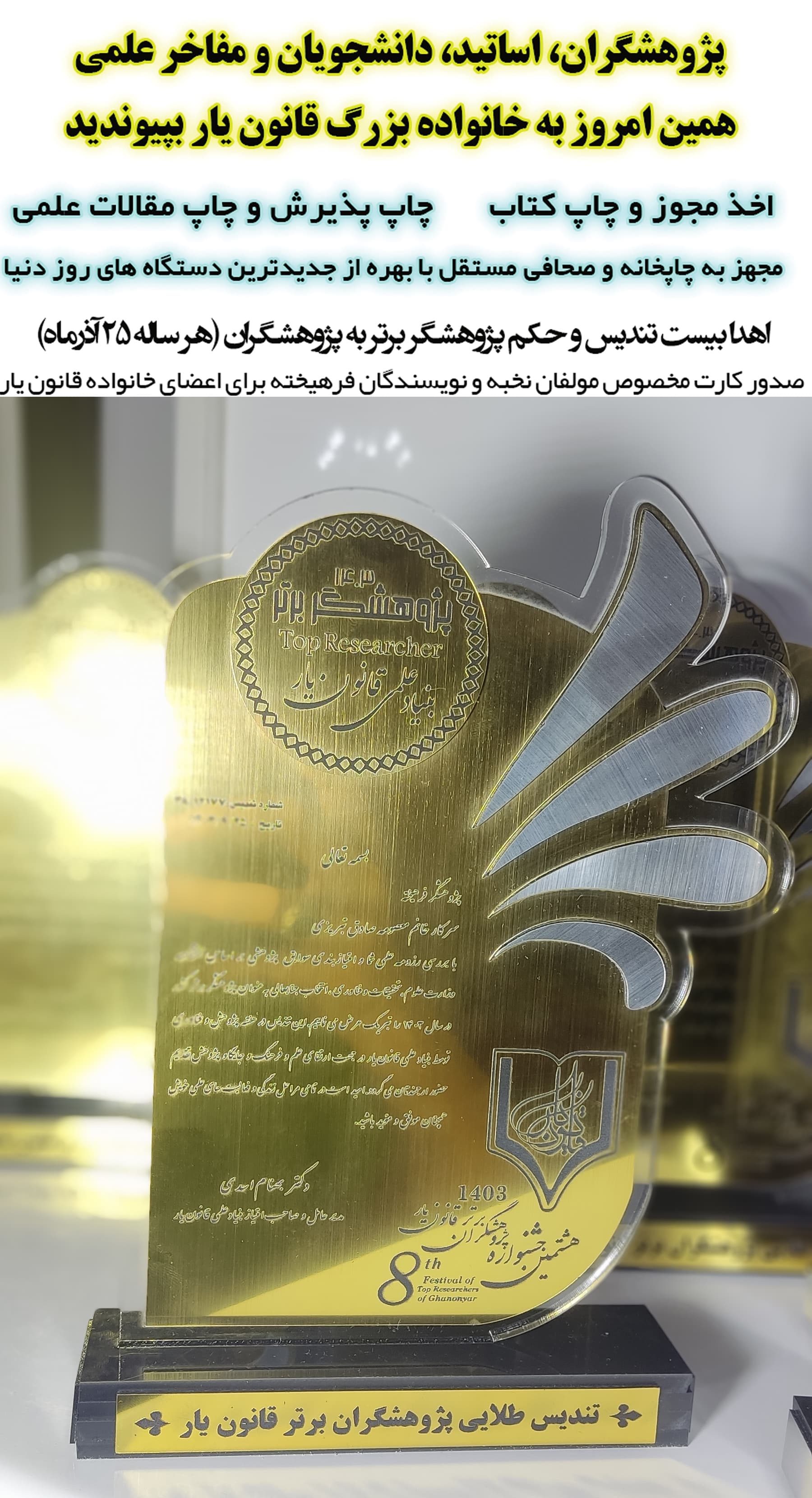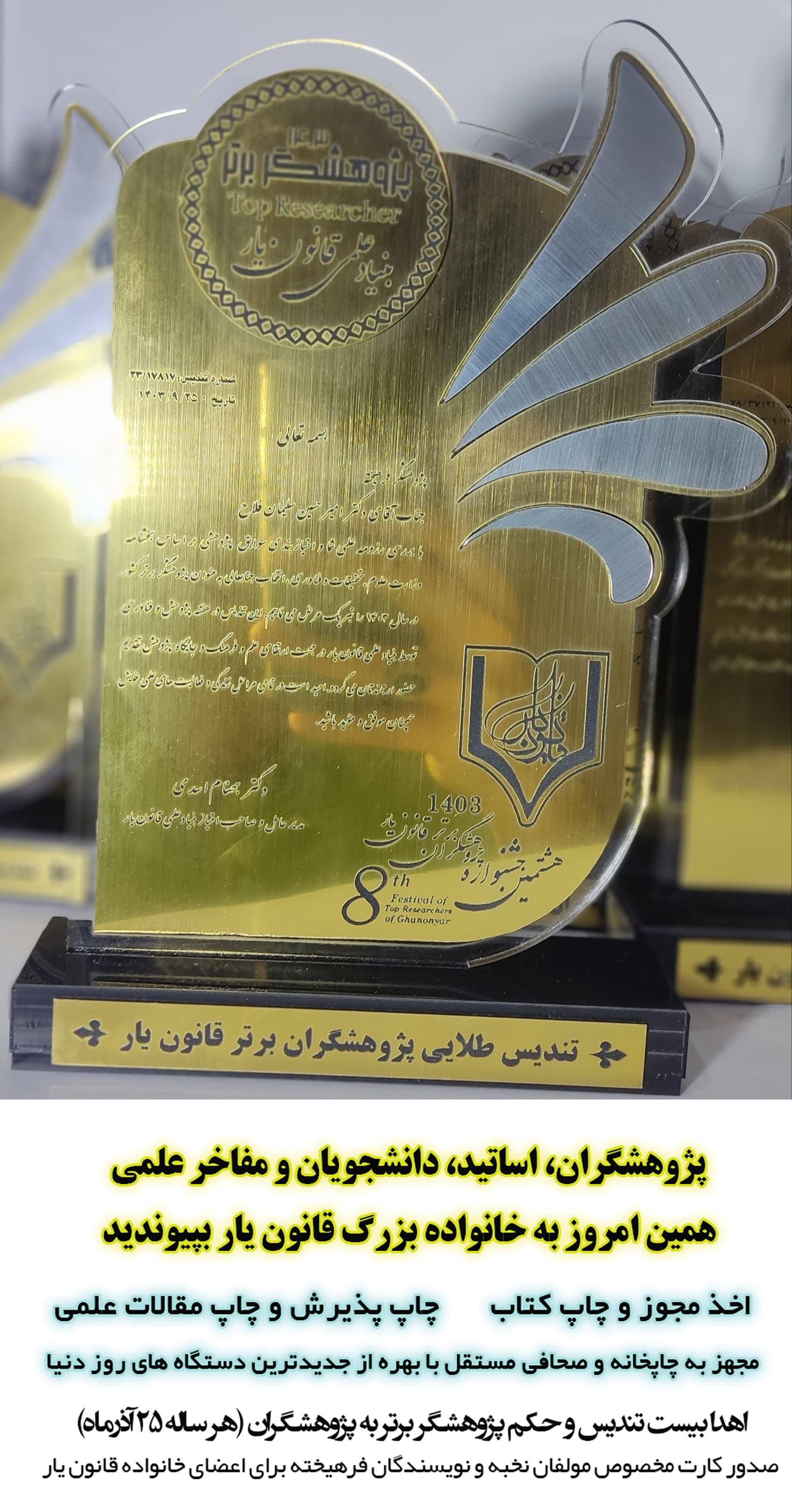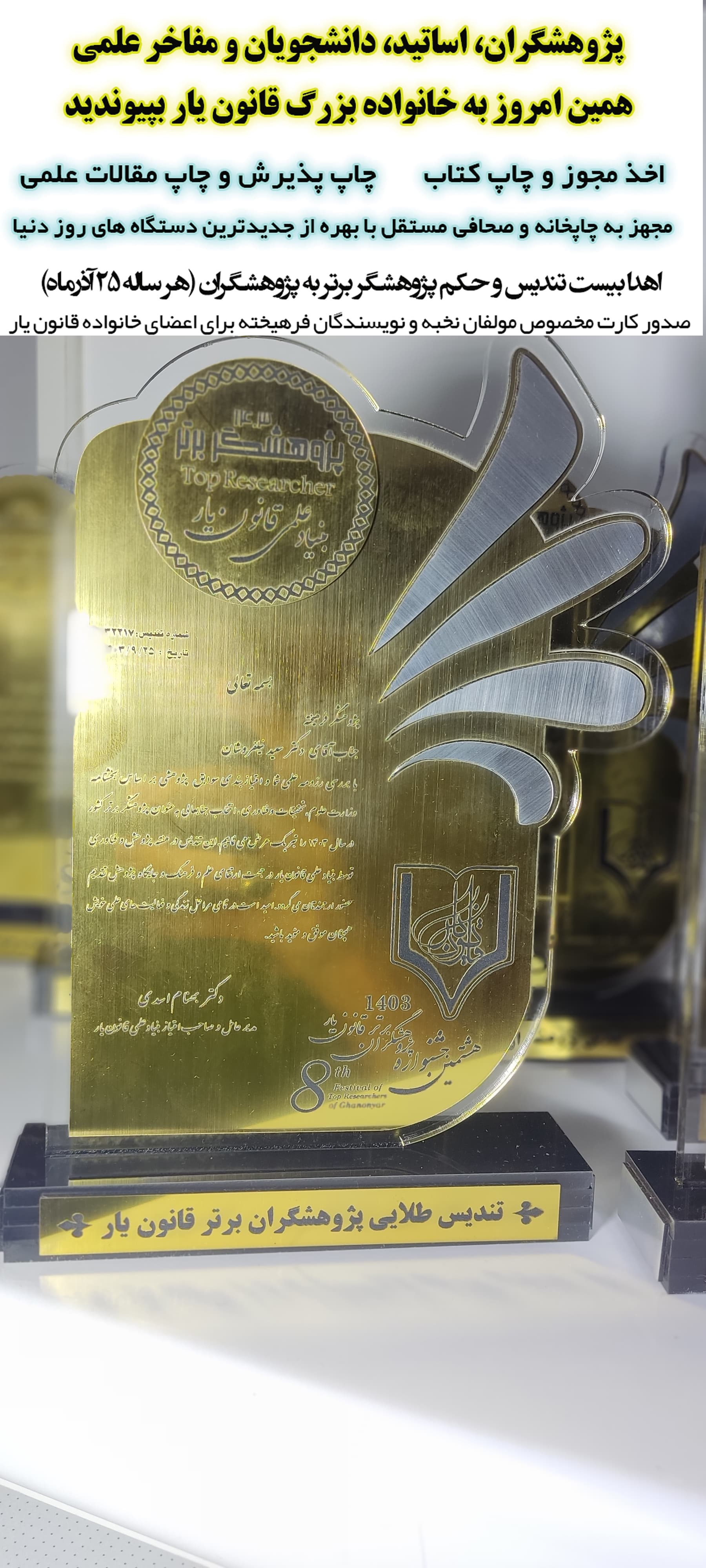 تندیس طلایی و پرافتخار پژوهشگران برتر سال 1403