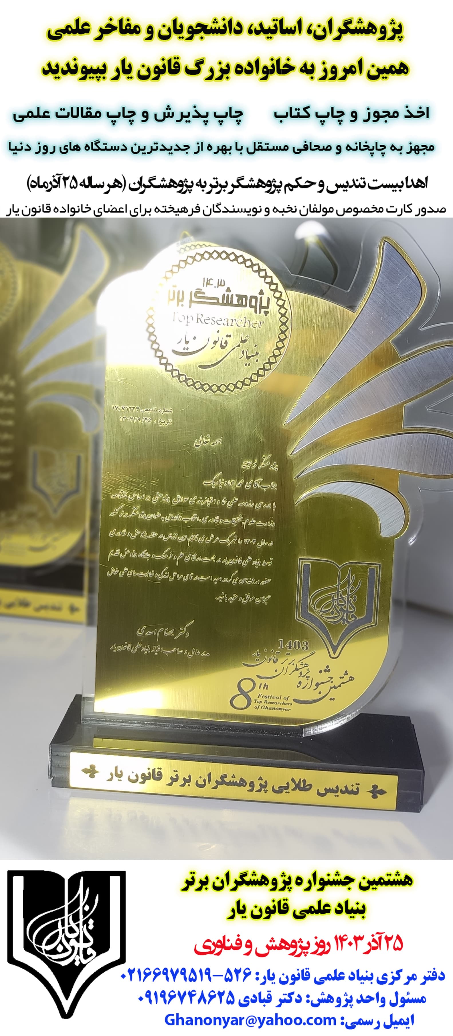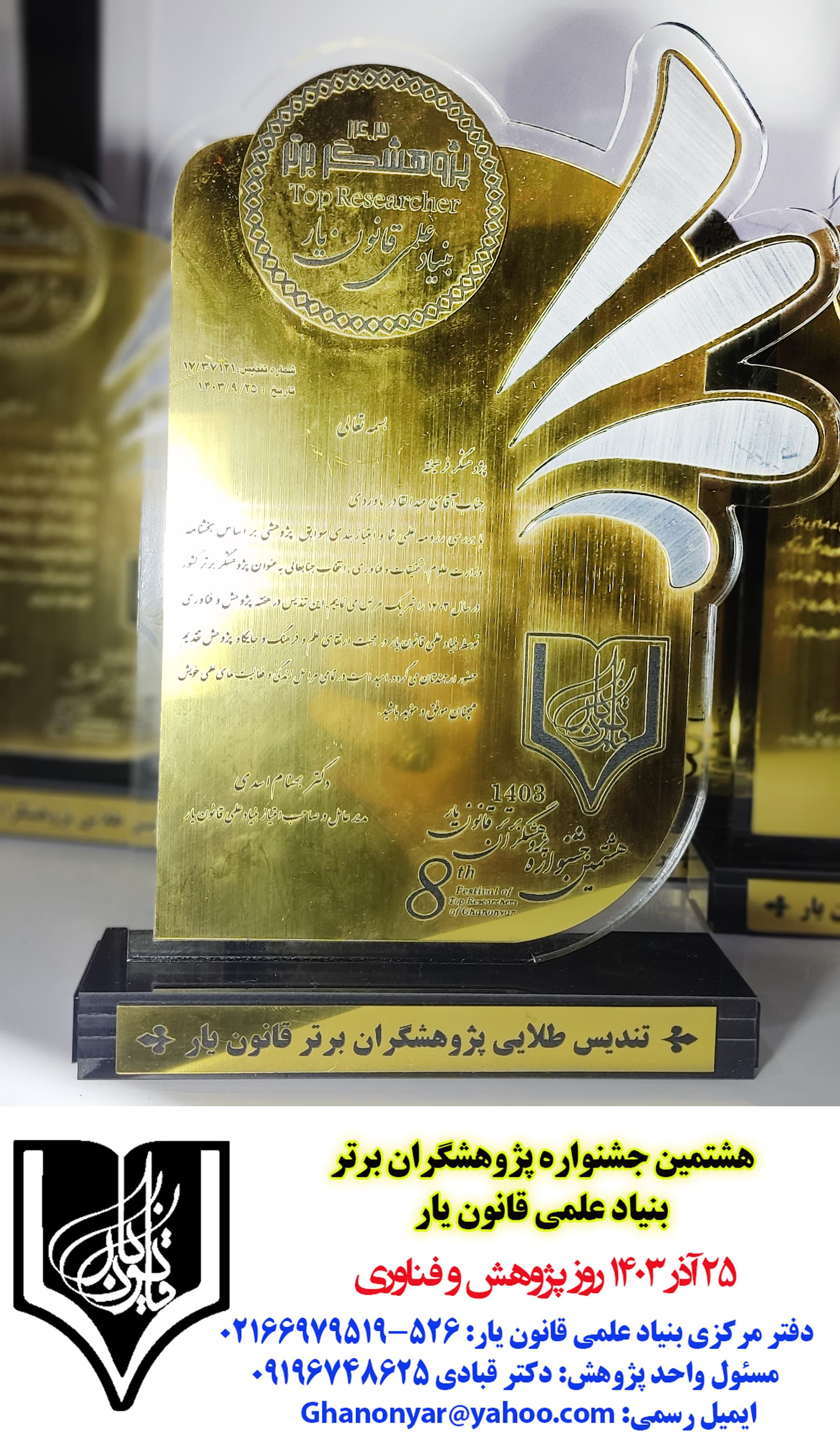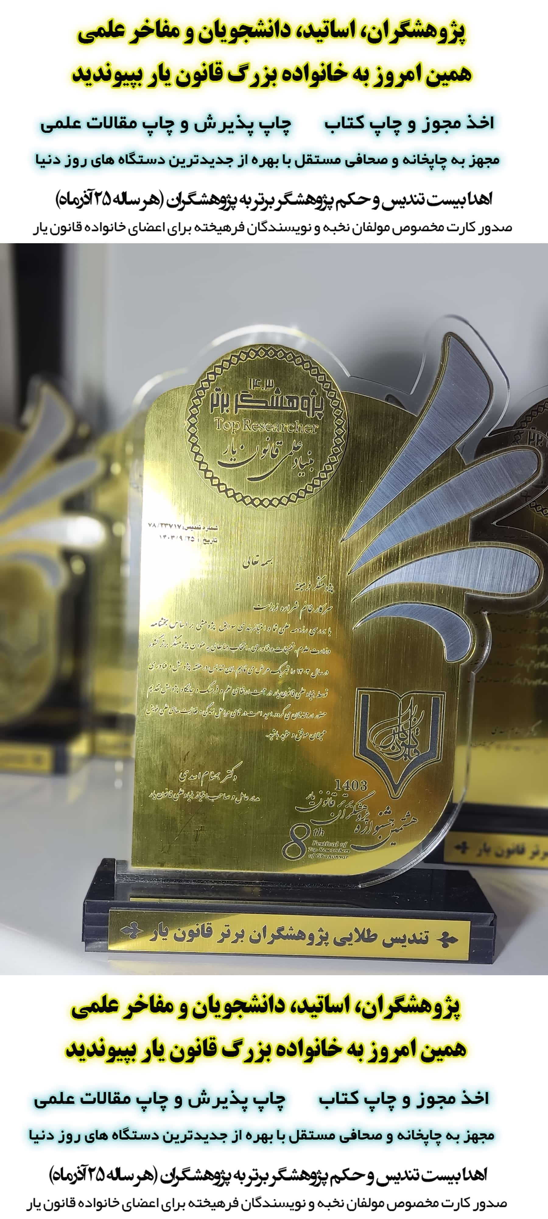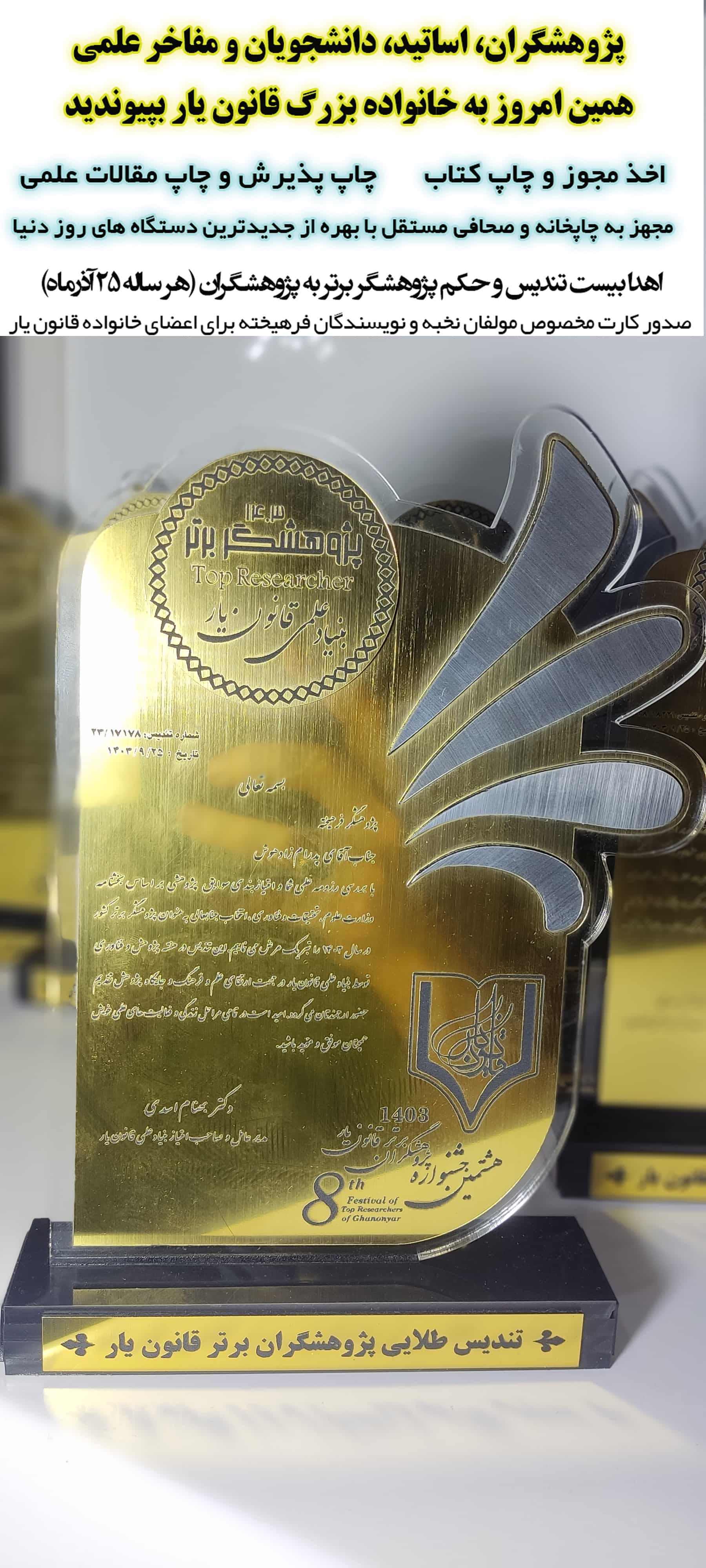 تندیس طلایی پژوهشگران برگزیده قانون یار 1403