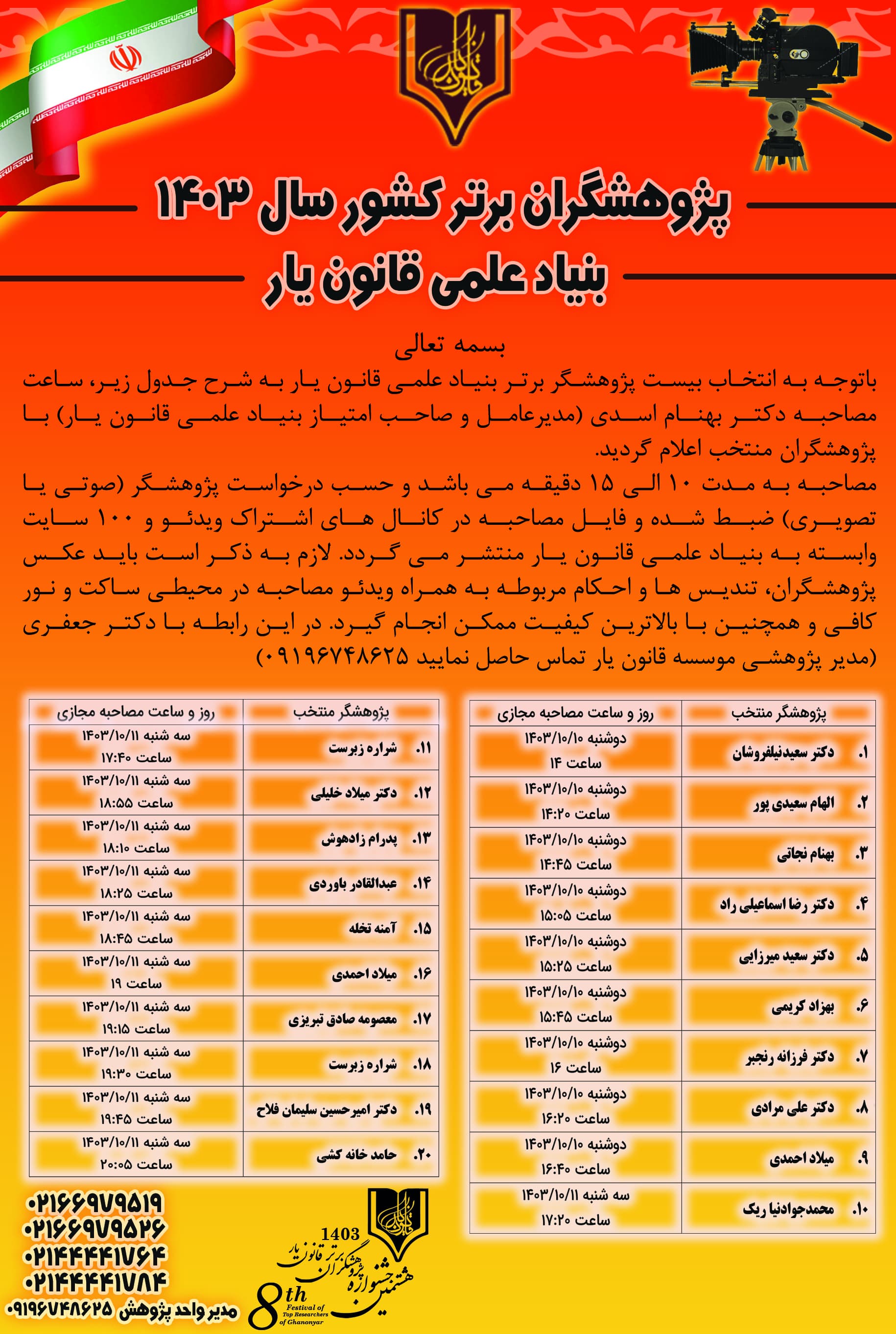 اسامی پژوهشگران برتر و مصاحبه با آن ها